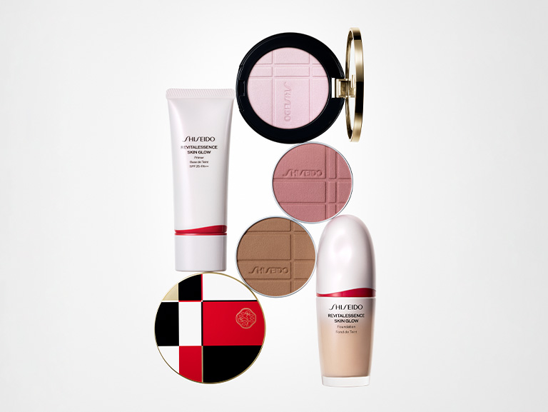 頬、目もとを艶やかに彩る新アイテム、カラー+グロウ エンハンサー1品と、SHISEIDOメーキャップの対象のファンデーション、パウダー、プライマーからお選びいただいた1品に、美容液アルティミューンの特製サイズをセット。