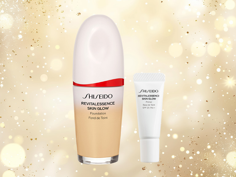 SHISEIDO エッセンス スキングロウ ファンデーションと同シリーズの美容液下地・エッセンス スキングロウ プライマー特製サイズをセットに。素肌から仕上がりを高めるファンデーションキットをぜひご体感ください。