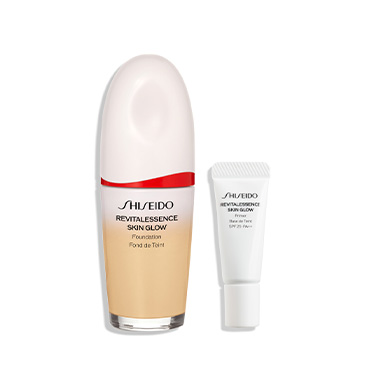 SHISEIDO エッセンス スキングロウ ファンデーションと同シリーズの美容液下地・エッセンス スキングロウ プライマー特製サイズをセットに。