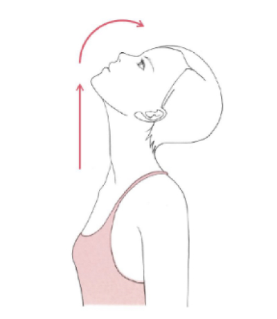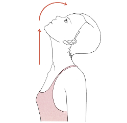 口を閉じたまま、顔を上に向け、首をのばし、10秒間キープします。