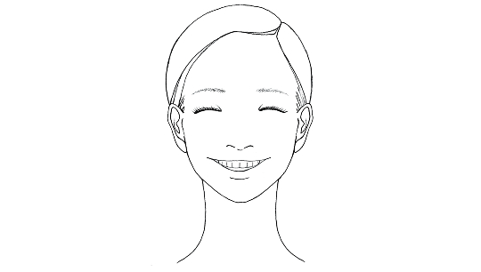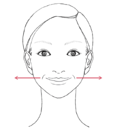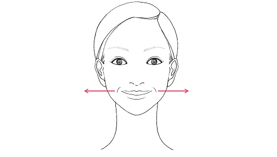 口角を斜め上に引き上げ、歯を見せるようににっこり笑います。