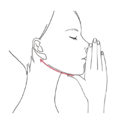 親指であご先から耳の下に向かってフェースラインの下をすり上げます。(6回)