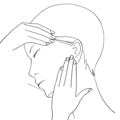 最後はこめかみを押します。